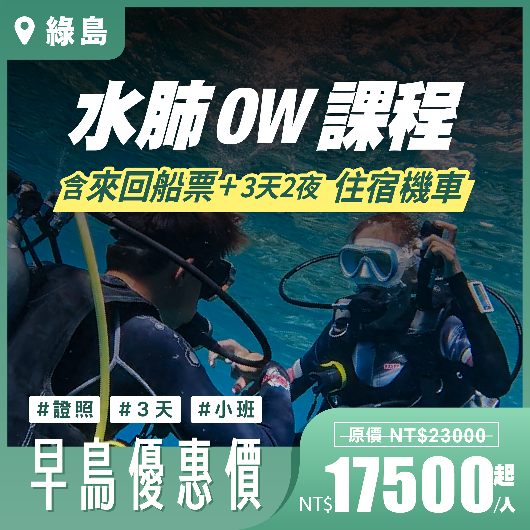 OW 課程費用、3天2夜住宿、綠島來回船票、機車2人一台,